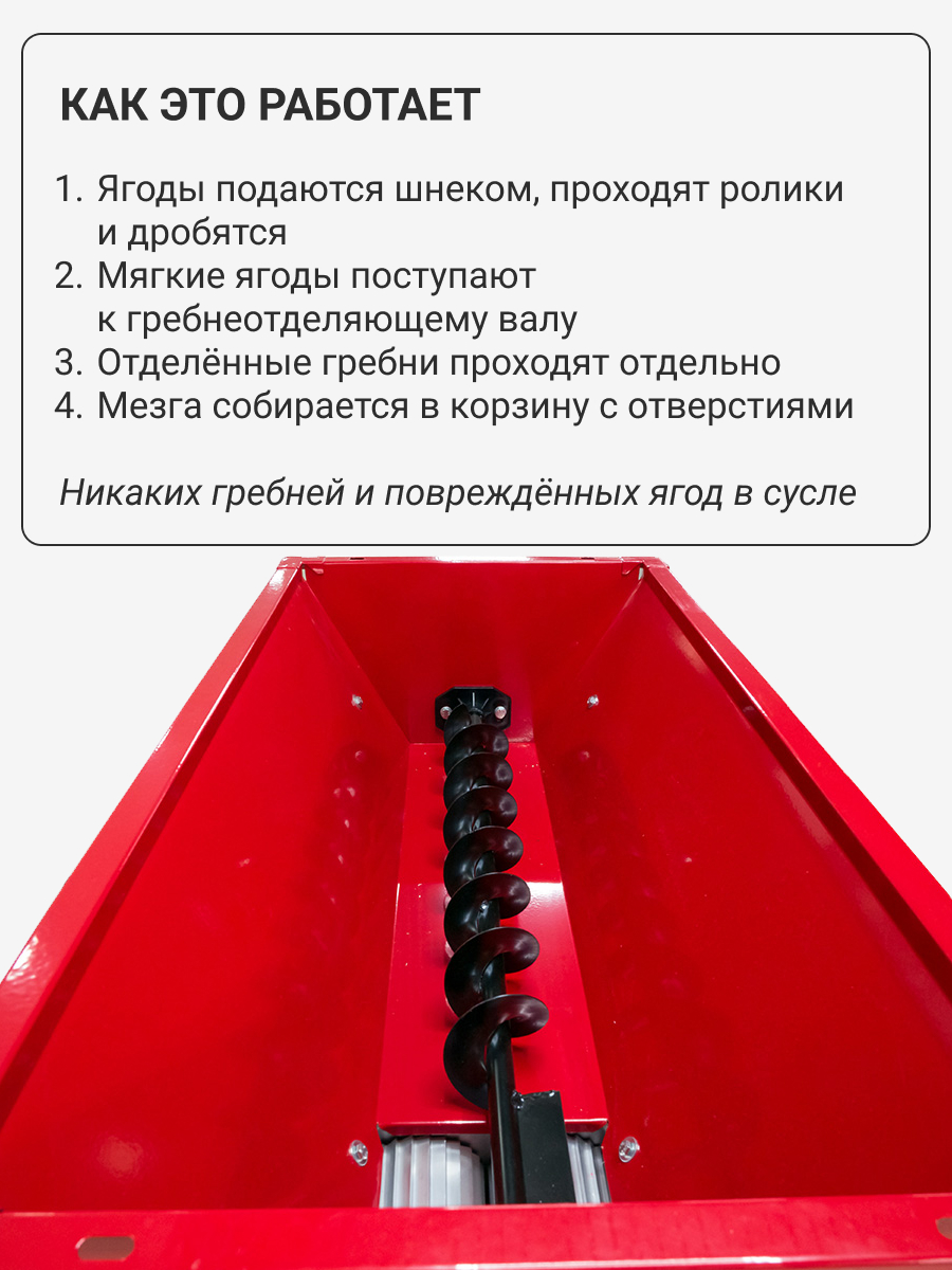Данная дробилка позволяет экономить время и силы. Гребнеотделитель является неотъемлемым помощником для любого винодела. Измельчитель комплектуется дополнительным наборным пластиковым бункером для увеличения вместимости бункера.